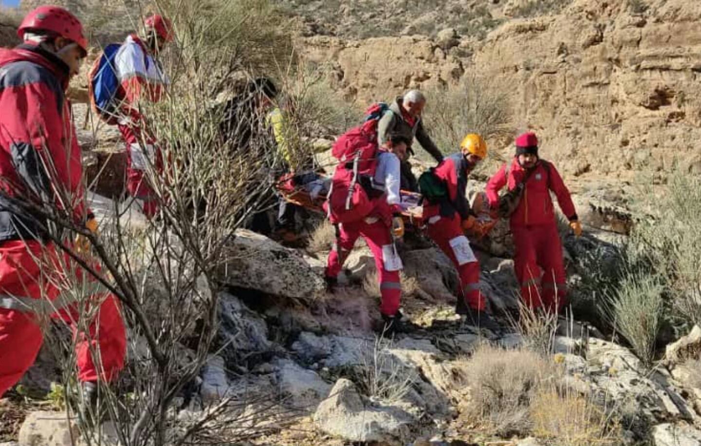 امدادرسانی نجاتگران امداد کوهستان هلال احمر جهرم به فرد سقوط کرده از ارتفاع