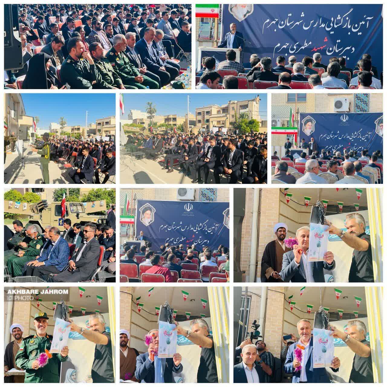 این آیین به صورت نمادین در دبیرستان شهید مطهری با حضوذ نماینده مردم جهرم و خفر در مجلس شورای اسلامی، فرماندار ویژه شهرستان و جمعی از مسئولان، دانش آموزان و خانوادههای آنها در شهرستان جهرم برگزار شد.
