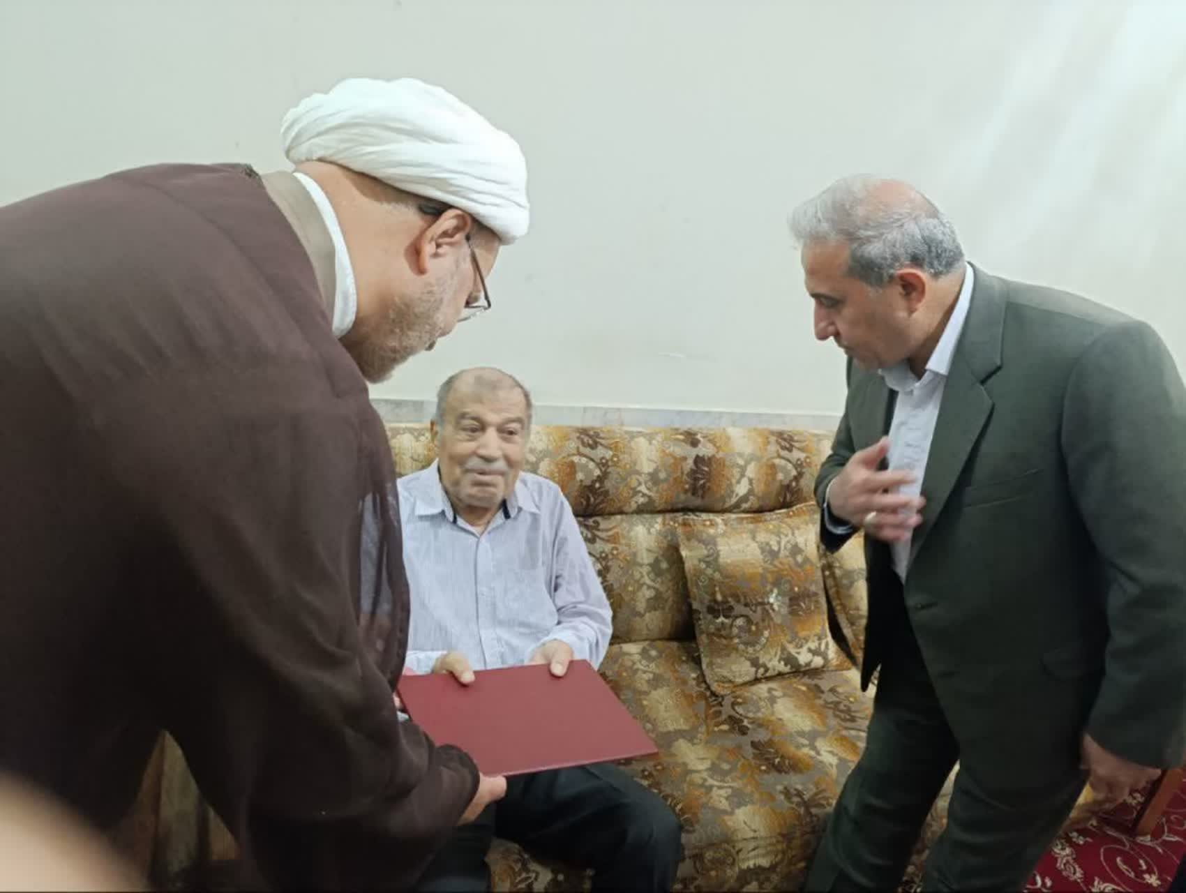قدرانی و تجلیل فرماندار و امام جمعه جهرم از یکی از پیشکسوتان سیاسی، اجتماعی شهرستان جهرم