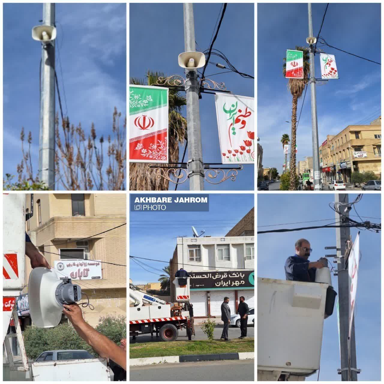 برای نخستینبار در جهرم؛ نصب سیستم صوت خیابانی در مسیر راهپیمایی ۲۲ بهمن