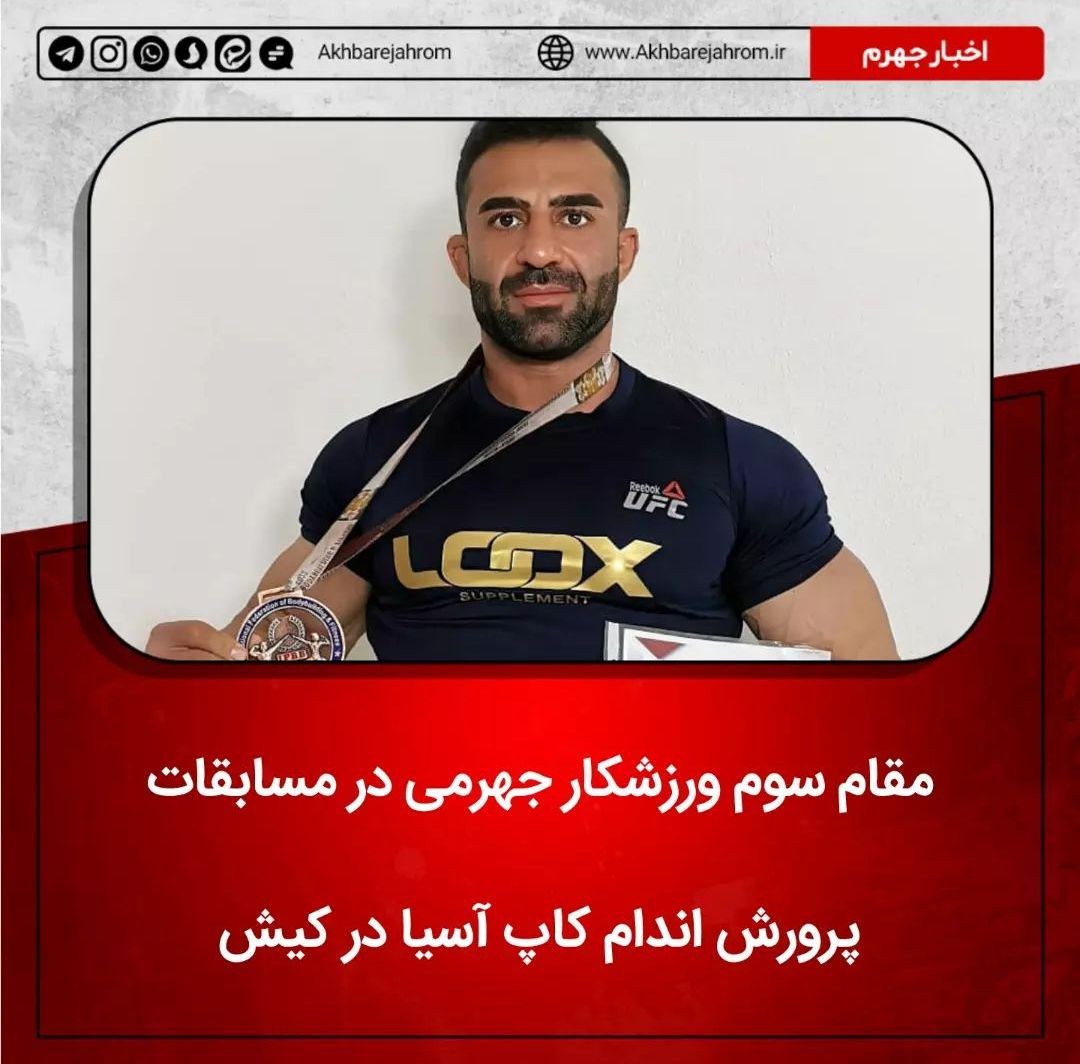به گزارش اخبار جهرم، «مهرداد آتشفراز» بدنساز شایسته جهرمی در مسابقات پرورش اندام کاپ آسیا که به میزبانی جزیره کیش برگزار شد به مقام سوم و نشان برنز دست یافت....