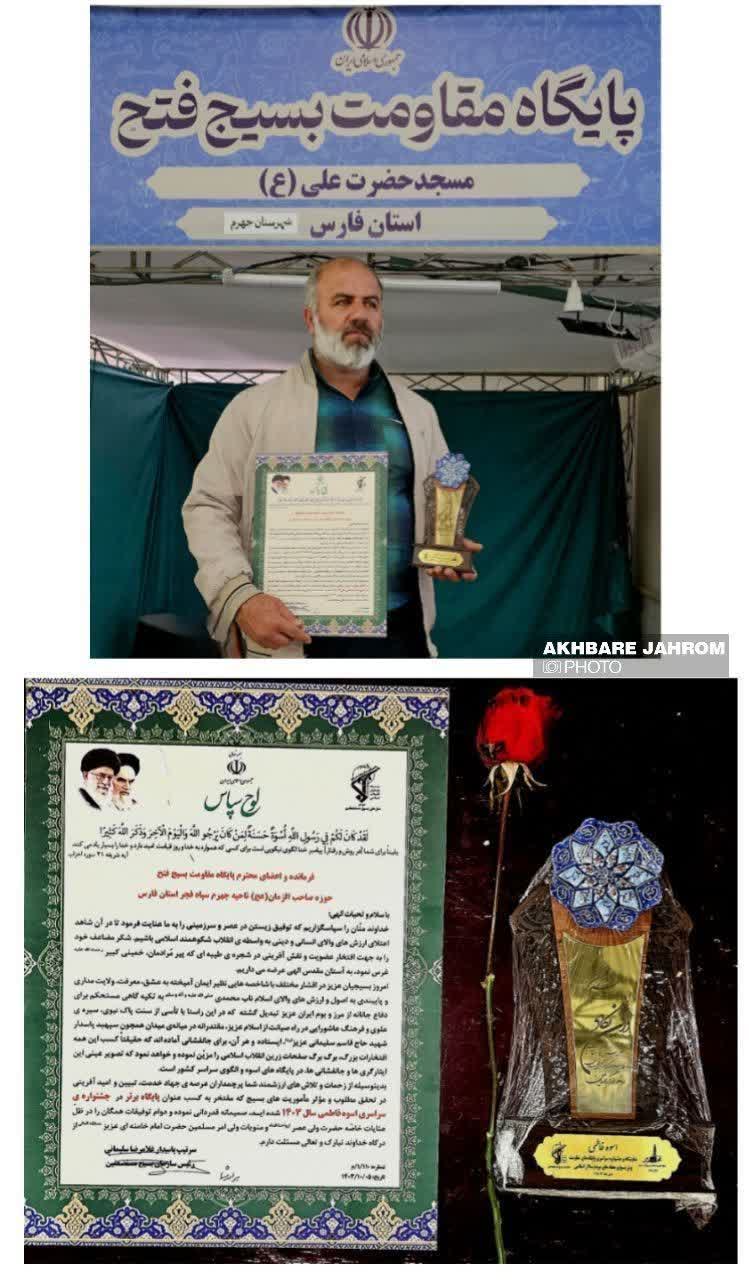پایگاه مقاومت بسیج فتح مسجد امام علی (ع) جهرم، برترین پایگاه مقاومت کشور شد به گزارش اخبار جهرم، در جشنواره سراسری اسوه فاطمی بسیج ۱۴۰۳، پایگاه مقاومت بسیج فتح مسجد...