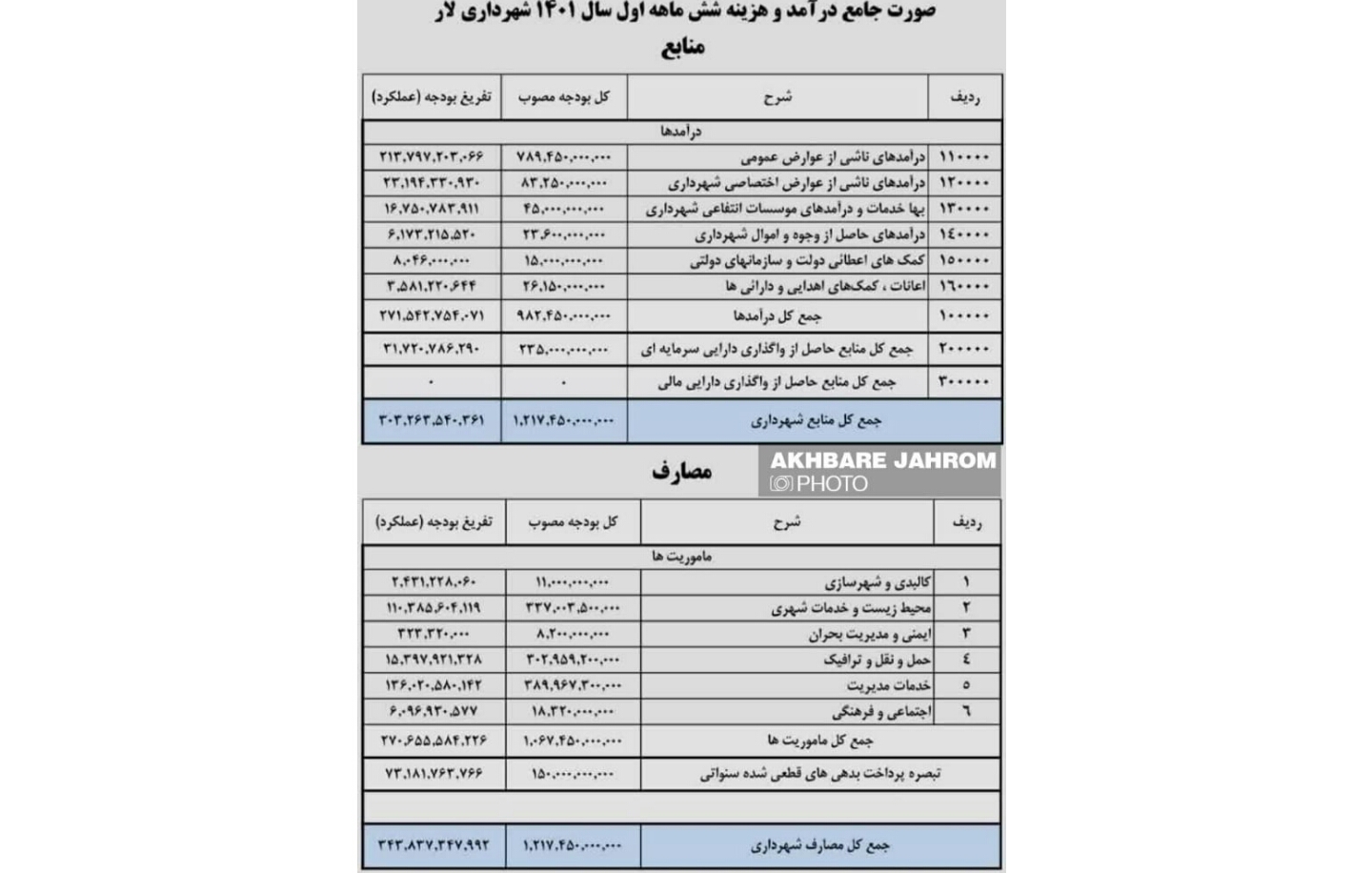 قابل توجه اعضای محترم شورای اسلامی شهر جهرم با شعار شورای شیشهای و شفاف!! به گزارش اخبار جهرم، تصویر فوق که مشاهده میفرمایید صورت جامع درآمد و هزینه شش ماهه...