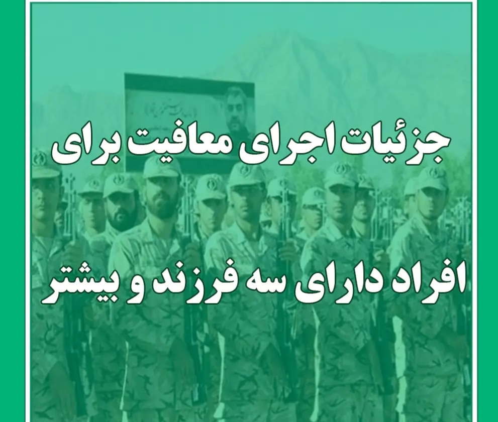 زمان محدود ثبت نام برای معافیت سربازی خانوادههای دارای سه فرزند و بیشتر رئیس سازمان وظیفه عمومی فراجا: معافیت سه فرزندی و بیشتر فقط تا پایان امسال اجرا میشود. مشمولان...