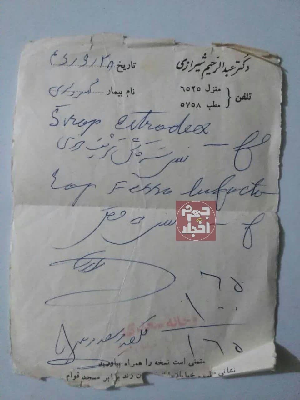 به مناسبت روز پزشک: نسخه مرحوم دکتر شیرازی، پزشک خیراندیش و رییس شبکه بهداشت جهرم مربوط به ۵۸ سال قبل
