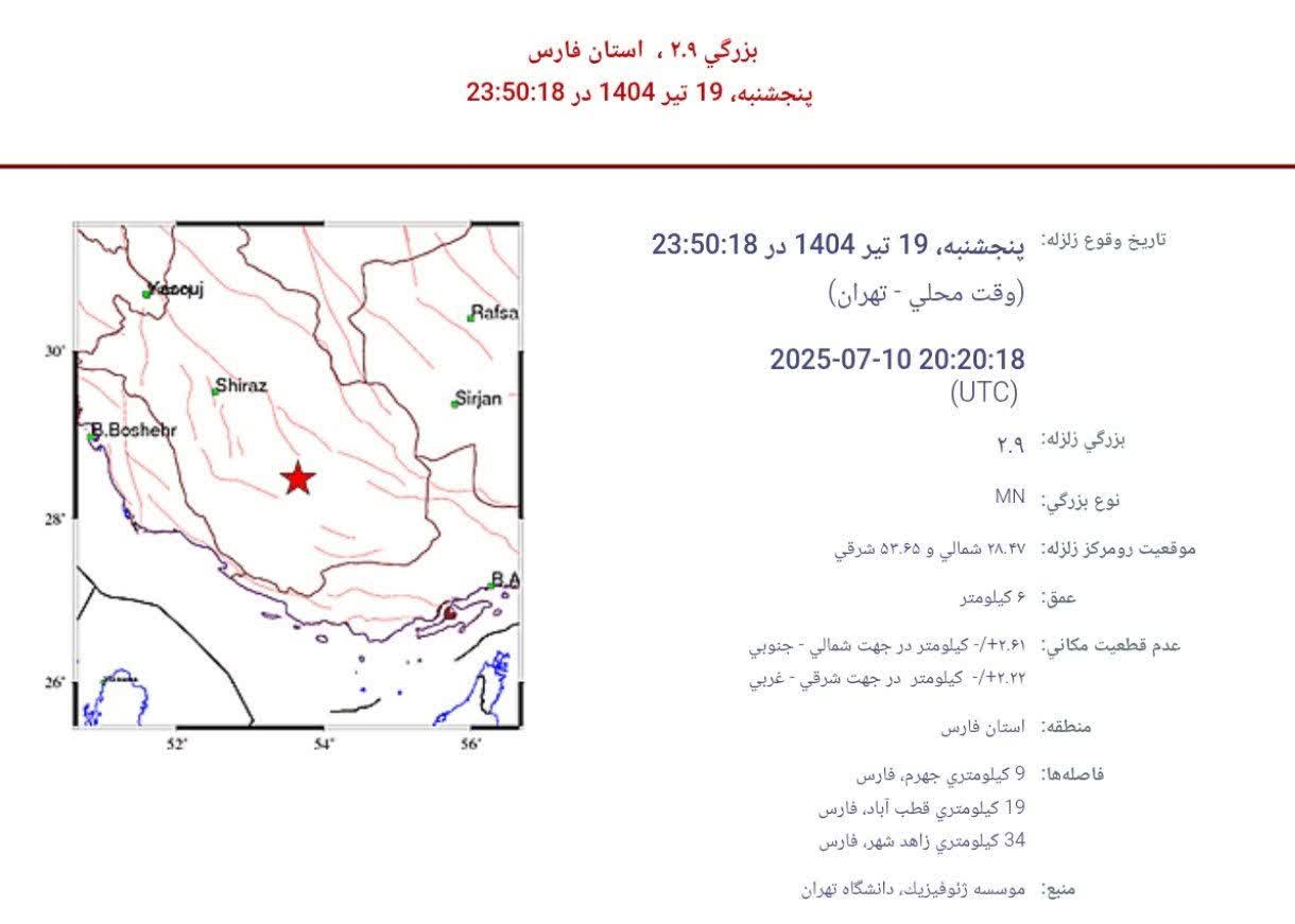 جهرم لرزید دقایقی پیش زلزله ۲.۹ ریشتری جهرم را لرزاند به گزارش اخبار جهرم، بنا بر اعلام مؤسسۀ ژئوفیزیک دانشگاه تهران، بزرگی این زلزله ۲.۹ ریشتر و محل وقوع آن...